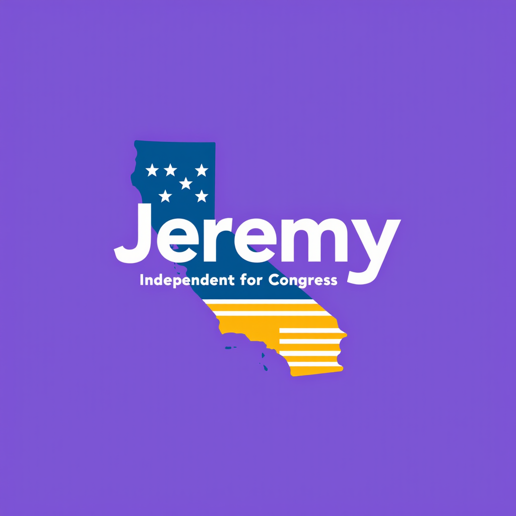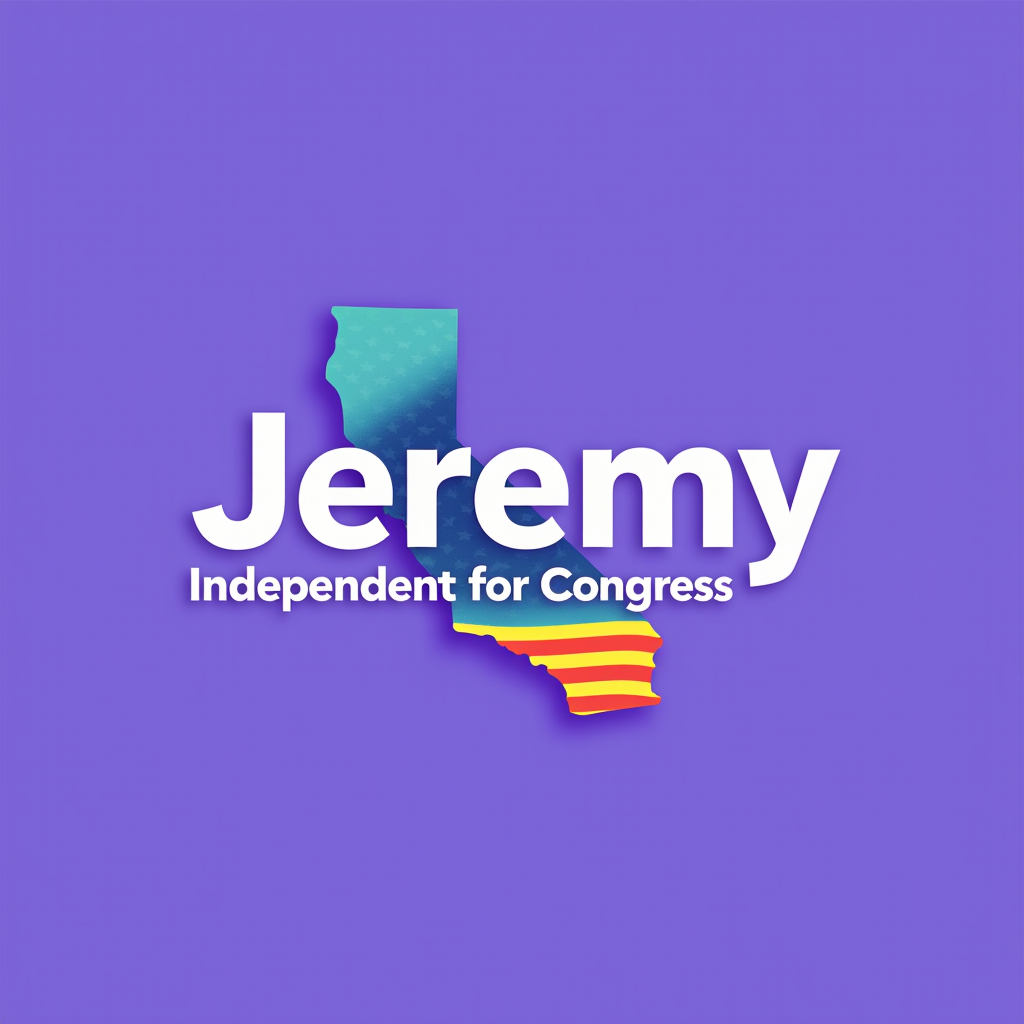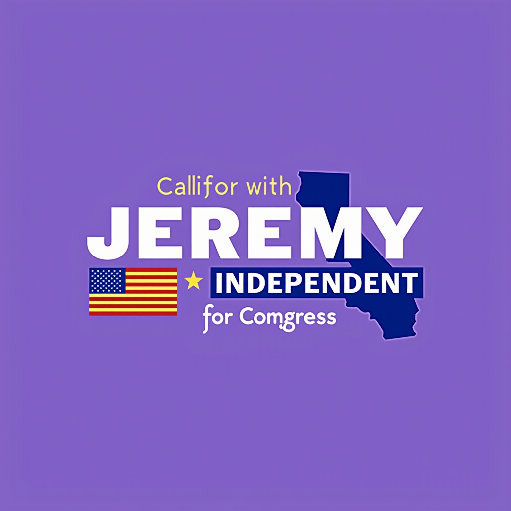 Graphic of the state of California with an American flag and campaign text for Jeremy, an independent candidate for Congress.