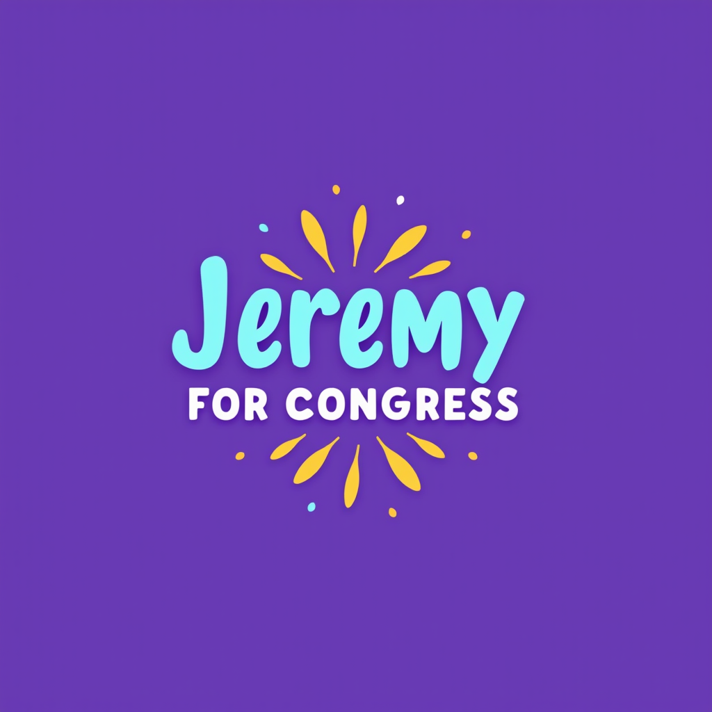 Graphic with the text "Jeremy for Congress 2020" in colorful, bold letters on a purple background.