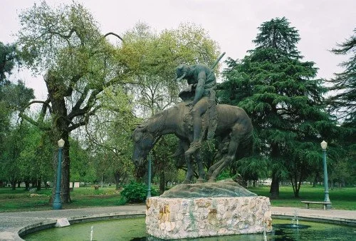 "End of Trail" (rep) by Fredrick Remington at Mooney Grove Park, Visalia, CA