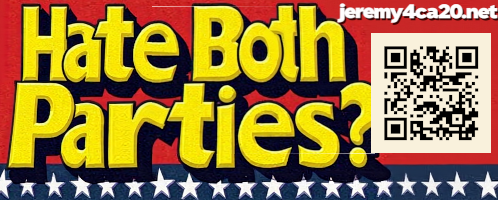 A gathering of people in a park with many American flags, some sitting and some standing, under large trees on a sunny day.